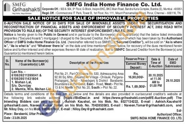 Plot No. 21, Part Of Khasra No. 530, Admeasuring Area 92.90 Sq. Mtrs., Situated At Village - Chilauki, Pargana-Pratapganj, Tehsil Nawabganj & District Barabanki. Boundaries as Per Deed, East: Road, West:- Plot No. 13 814. North: Plot No. 20, South:- Plot No. 22