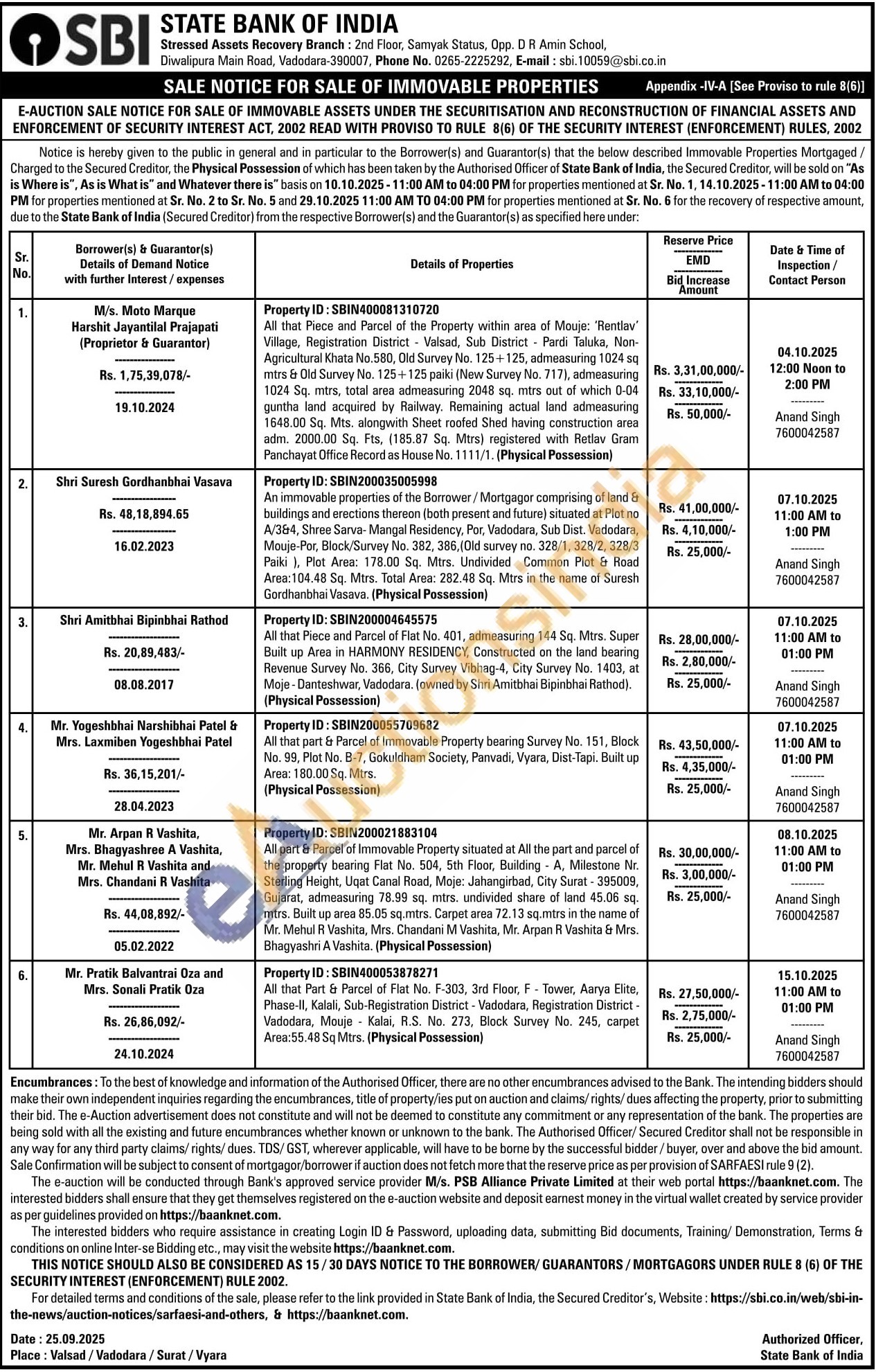Property ID: SBIN200055709682 : All that part & Parcel of Immovable Property bearing Survey No. 151, Block No. 99, Plot No. B-7, Gokuldham Society, Panvadi, Vyara, Dist-Tapi. Built up Area: 180.00 Sq. Mtrs. (Physical Possession)