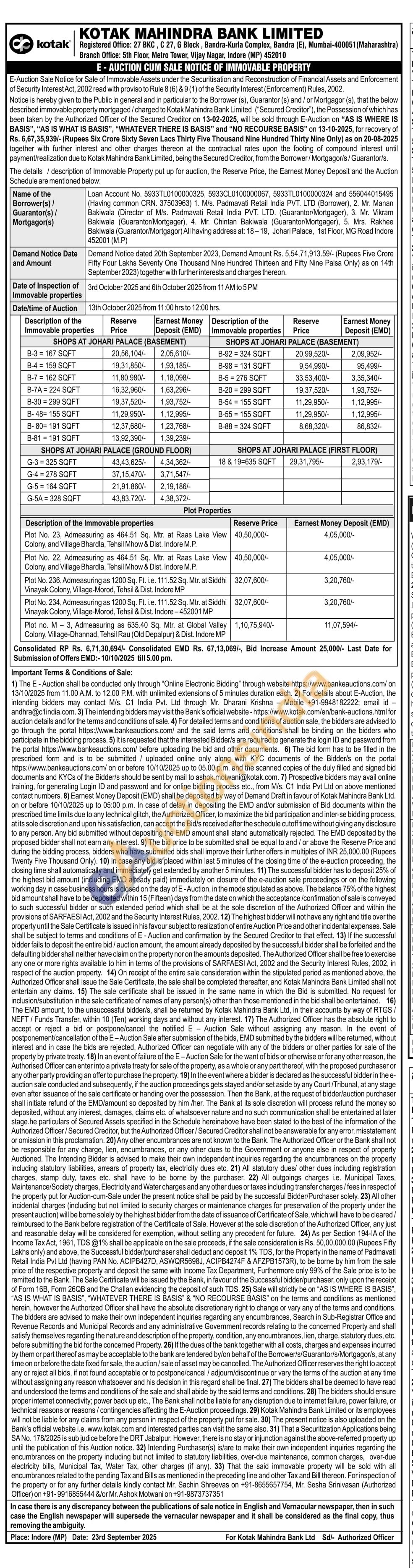 Mr. Sesha Srinivasan (Authorized Officer) on +91-9916855444 &/or Mr. Ashok Motwani on +91-9873737351
