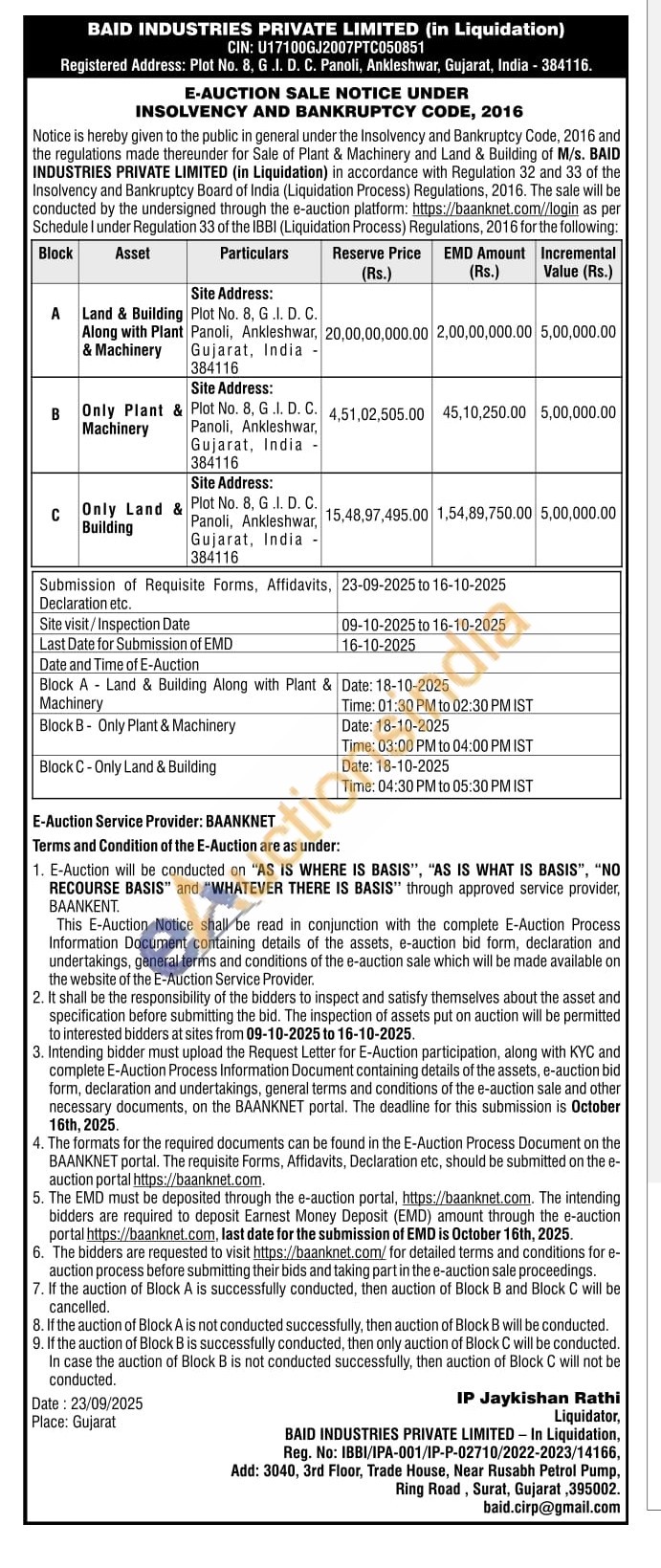 Only Plant & Machinery Site Address: Plot No. 8, G.I. D. C. Panoli, Ankleshwar, Gujarat, India -384116