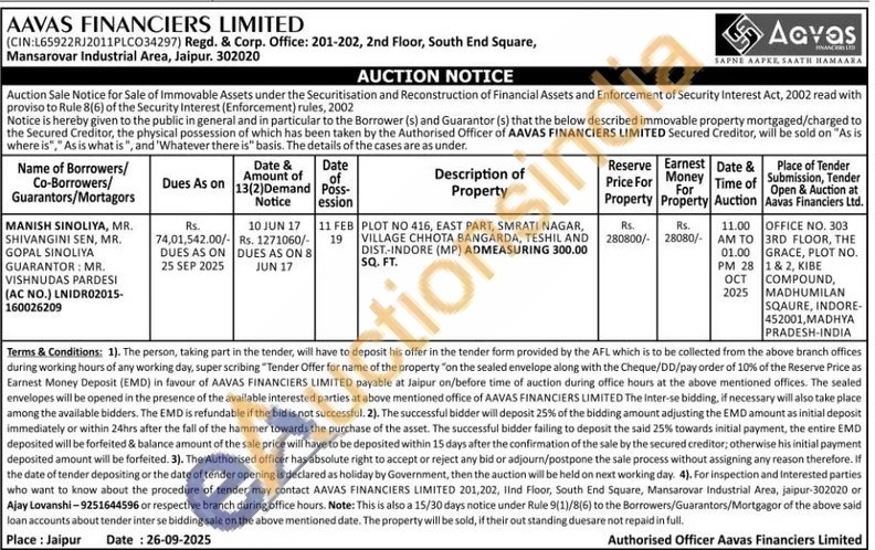 PLOT NO 416, EAST PART, SMRATI NAGAR, VILLAGE CHHOTA BANGARDA, TESHIL AND DIST-INDORE (MP) ADMEASURING 300.00 SQ. FT