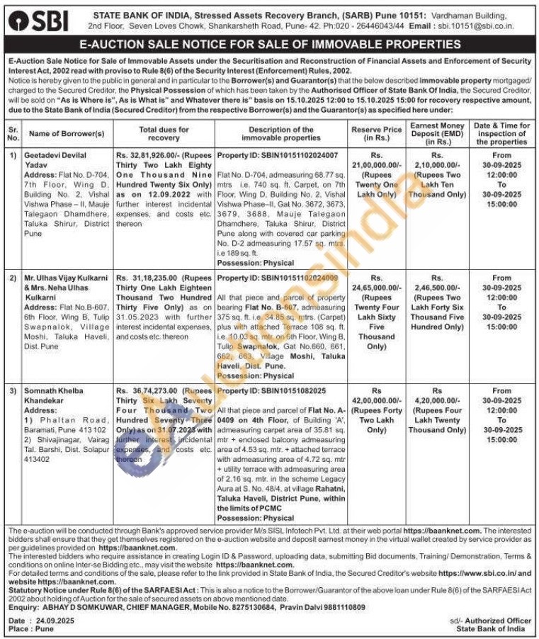 Flat No. D-704, admeasuring 68.77 sq. mtrs le. 740 sq. ft. Carpet, on 7th Floor, Wing D, Building No. 2, Vishal Vishwa Phase-II, Gat No. 3672, 3673, 3679, 3688, Mauje Talegaon Dhamdhere, Taluka Shirur, District Pune along with covered car parking No. D-2 admeasuring 17.57 sq. mtrs. i.e 189 sq. ft.