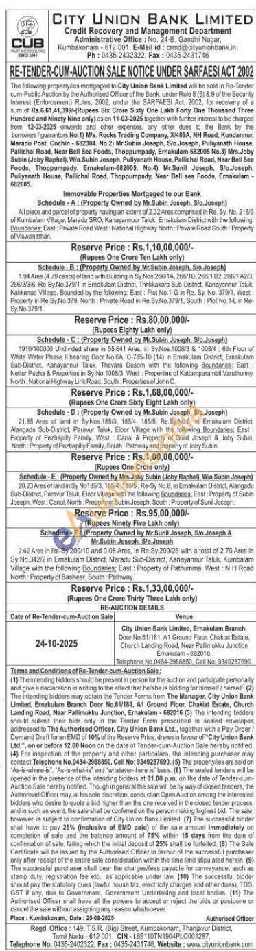 Contact Telephone No.0484-2988850, Cell No. 9349287690