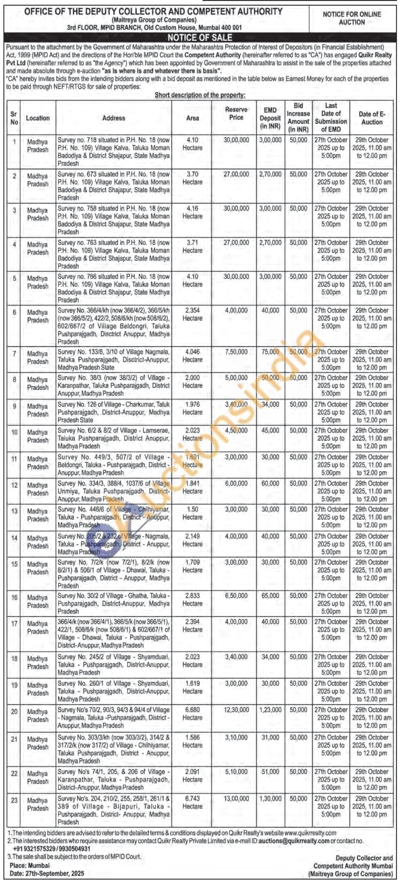 1) Survey no. 718 situated in P.H. No. 18 (now P.H. No. 109) Village Kalva, Taluka Moman Badodiya & District Shajapur, State Madhya Pradesh
