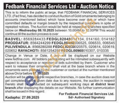 Fedbank Financial Services Ltd Gold Auctions Auction in Kadapa