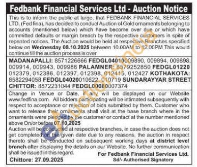 Fedbank Financial Services Ltd Gold Auctions Auction in Chittoor