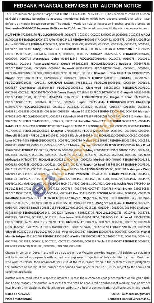 Fedbank Financial Services Ltd Gold Auctions Auction in Kolhapur