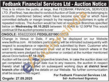 Fedbank Financial Services Ltd Gold Auctions Auction in Ongole