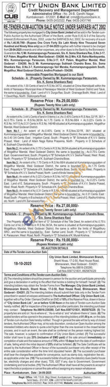 Ac.0.75% Cents in R.S.No.36/3A Ac1.75 Cents in R.S.No.684 Ac.0.22% Cents in R.S.No. 147/13 Ac 0:31 Cents in RS.No. 146/48 situated at Kummarapurugupales, Mogalthur Mandal, West Godavan District Item No.1: An extent of Ac.0.40% Cents in RS.Nos 32/1R 36/1 situated at Kummarapurugupalem of Mogalthur Mandal, West Godavari District, the same is bounded by: Ac.0.40 3/4 Cents: East Irrigation Canal, South Property in "B" Schedule of KVV. Sesha Prasad, West Land of Allam Naga Ratna Prasanna, North Property in D Schedule of K. Subhash Chandra Bose Item No.2: An extent of Ac 0.75% Cents in R.S.No 38/3A situated at Kummarapurugupałem of Mogalthur Mandal, West Godavari District, the same is bounded by Ac 0.75% Cents: East: Government land, South Property in "B" Schedule of K.VV. Sesha Prasad, West: Road. North: Property in "D" Schedule of K. Subhash Chandra Bose Item No.3: An extent of Ac. 1.75 Cents in R.S.No. 684 situated at Kummarapurugupalem of Mogalthur Mandal, West Godavari District, the same is bounded by Ac. 1.75 Cents. East: Property in "D" Schedule of K. Subhash Chandra Bose, South Road, West Property in "B" Schedule of K.VV. Sesha Prasad, North: Land of Ande Veeraswamy. Item No.4: An extent of Ac. 0.22% Cents in R.S.No. 147/13 situated at Kummarapurugupalem of Mogalthur Mandal, West Godavan District, the same is bounded by Ac. 0.22% Cents: East: Land of E. Satyanarayana, South Property in "B" Schedule of K.V.V. Sesha Prasad, West: Road North: Property in "D" Schedule of K. Subhash Chandra Bose Item No.5: An extent of Ac. 0.31 Cents in RS.No. 146/48 situated at Kummarapurugupalem of Mogalthur Mandal, West Godavan District, the same is bounded by Ac.031 Cents: East: Road South Property in B schedule of K.VV. Sesha Prasad. West: Land of G. Radha Krishna. etc. North: Land of K.Sarveswara Rao