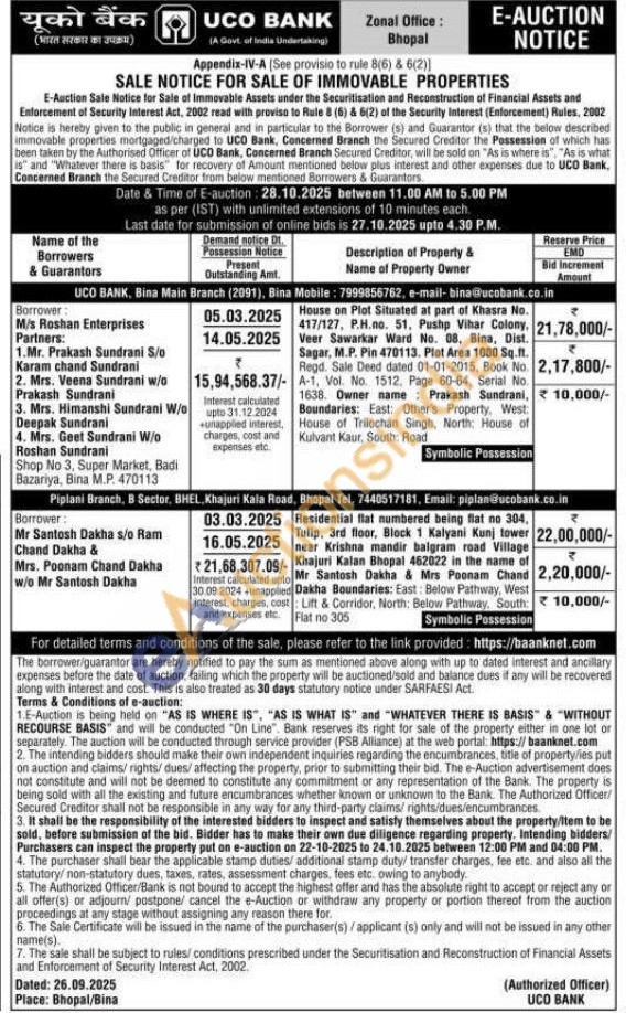 Residential flat numbered being flat no 304, Tulip, 3rd floor, Block 1 Kalyani Kunj tower near Krishna mandir balgram road Village Khajuri Kalan Bhopal 462022 in the name of Mr Santosh Dakha & Mrs Poonam Chand Dakha Boundaries: East: Below Pathway, West : Lift & Corridor, North: Below Pathway. South: Flat no 305
