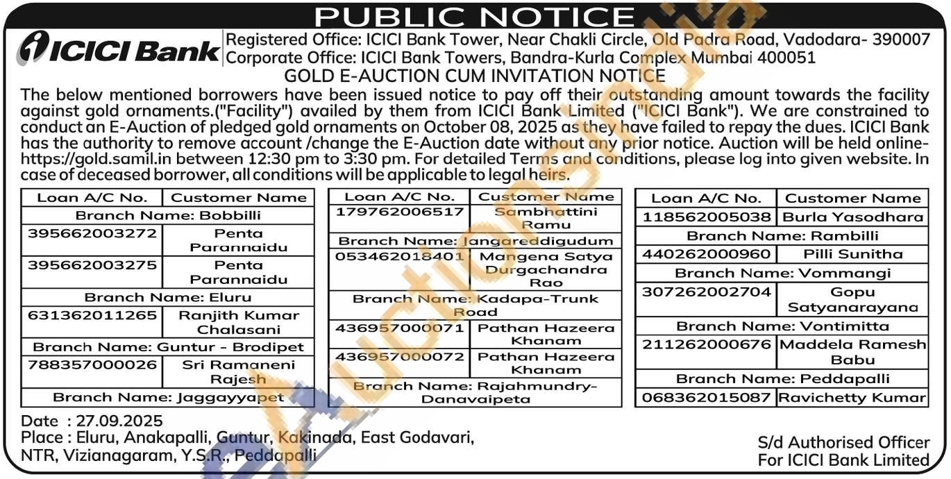 ICICI Bank Gold Auctions Auction in Eluru