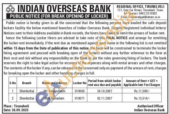Indian Overseas Bank Gold Auctions Auction in Tirunelveli