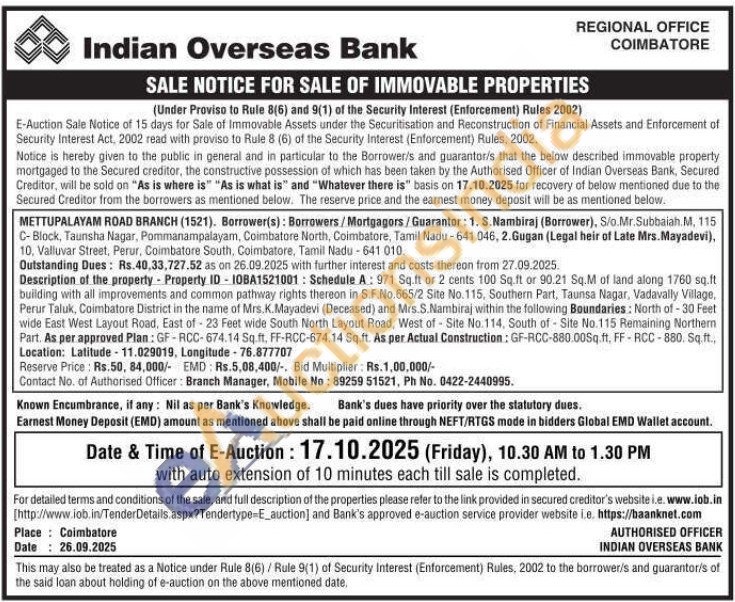 Branch Manager Mobile No: 89259 51521 / Phone No : 0422-2440995
