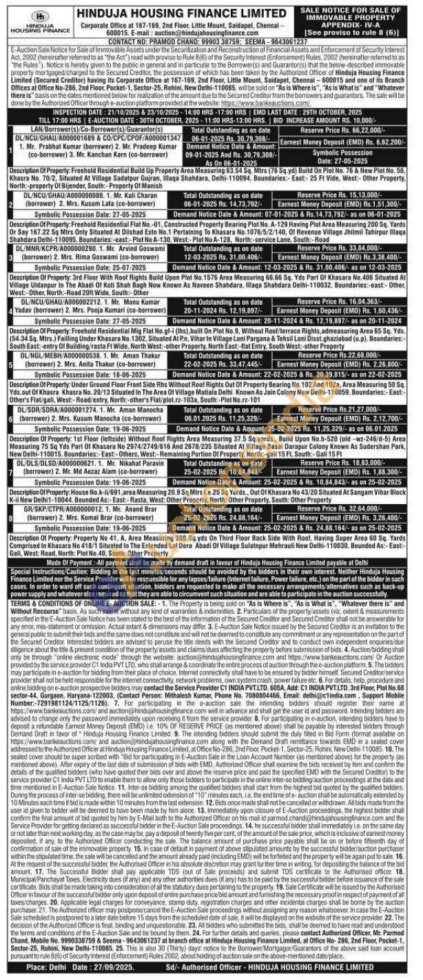 Authorized Officer, Mr. Parmod Chand Mobile No : 9990338759 / Seema-9643061237