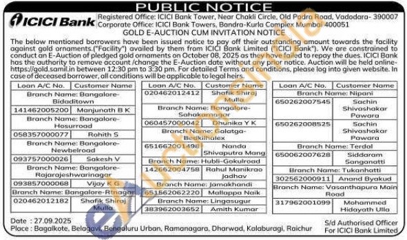 ICICI Bank Gold Auctions Auction in Bengaluru