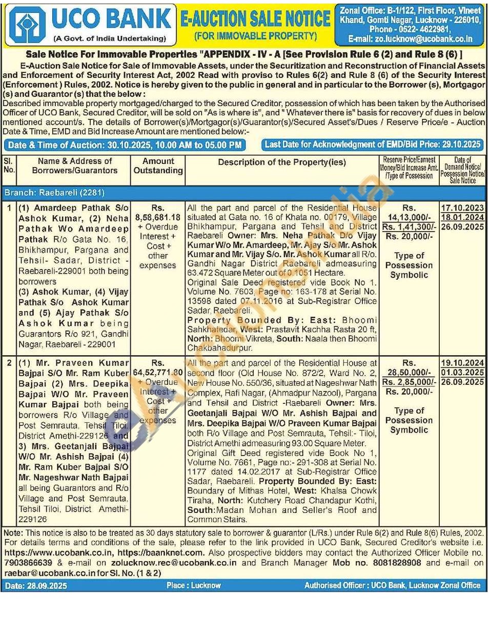 All the part and parcel of the Residential House situated at Gata no. 16 of Khata no. 00179, Village Bhikhampur, Pargana and Tehsil and District Raebareli Owner: Mrs. Neha Pathak D/o Vijay Kumar W/o Mr. Amardeep, Mr. Ajay S/o Mr. Ashok Kumar and Mr. Vijay S/o. Mr. Ashok Kumar all R/o. Gandhi Nagar District Raebareli admeasuring 63.472 Square Meter out of 0.1051 Hectare