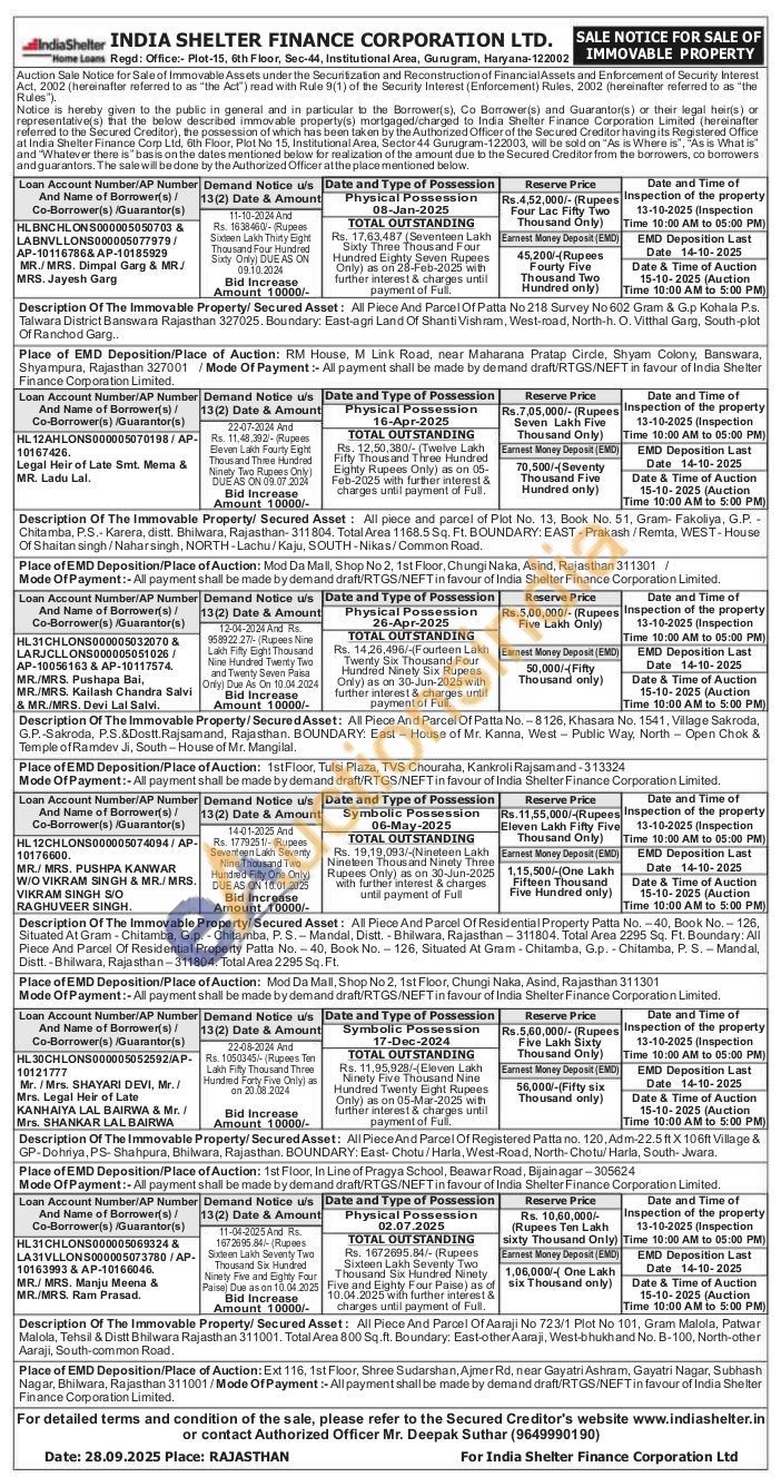 Description Of The Immovable Property/ Secured Asset: All Piece And Parcel Of Patta No 218 Survey No 602 Gram & G.p Kohala P.s. Talwara District Banswara Rajasthan 327025. Boundary: East-agri Land Of Shanti Vishram, West-road, North-h. O. Vitthal Garg, South-plot Of Ranchod Garg..