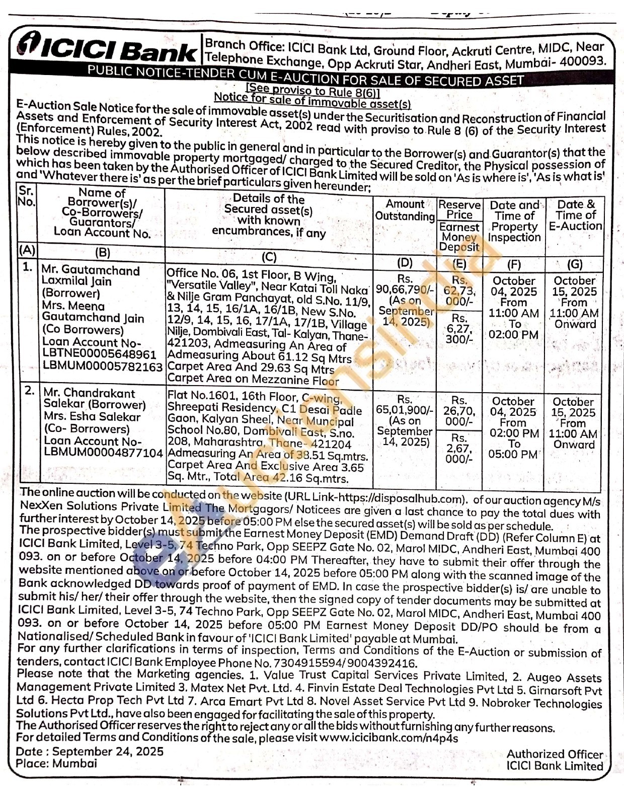 Flat No. 909, 9th Floor, Wing C, Pavanputra Apartments, New Survey No. 324,102/10/12/13/17, Olde Survey No. 101, 103, 102, Hissa No. 1, 9, 13,10, 13/1, 14, 13/B, 13/2, 13/C, Mouje Kalher, Opposite Devika English School, Taluka Bhiwandi, Thane-421302. Admeasuring An Area of Admesuring About 493.09 Sq Fts Carpet Area I.E. 45.83 Sq Mtrs.