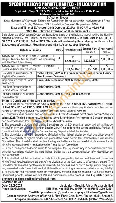Survey No. 128 Hissa 1 and 2, Village - P-rangut, Taluka - Mulshi, District-Pune along with the Plant & Machinery
