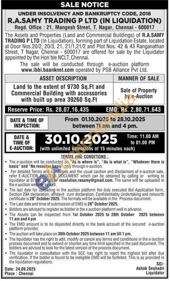Land to the extent of 9730 Sq.Ft and Commercial Building with accessories with built up area 39260 Sq.Ft