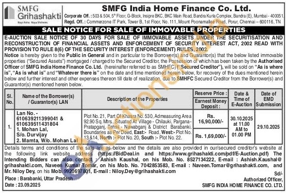 Plot No. 21, Part Of Khasra No. 530, Admeasuring Area 92.90 Sq. Mtrs., Situated At Village Chillauki, Pargana-Pratapganj, Tehsil Nawabganj & District Barabanki. Boundaries as Per Deed, East: Road, West:-Plot No. 13814, North: Plot No. 20, South :- Plot No. 22.