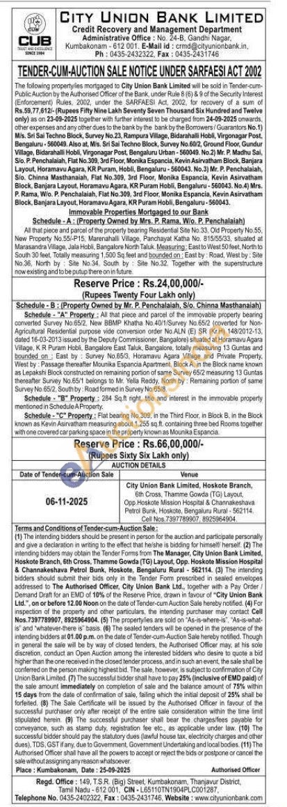 1) All that piece and parcel of the property bearing Residential Site No 33. Old Property No.55, New Property No.55-P15. Marenahalli Village, Panchayat Katha No. 815/55/33, situated at Marasandra Village, Jala Hobli, Bangalore North Taluk. Measuring: East to West 50 feet, North to South 30 fleet, Totally measuring 1,500 Sq fleet and bounded on East by: Road, West by: Site No.36, North by Site No.34. South by Site No.32. Together with the superstructure now existing and to be putup there on in future
