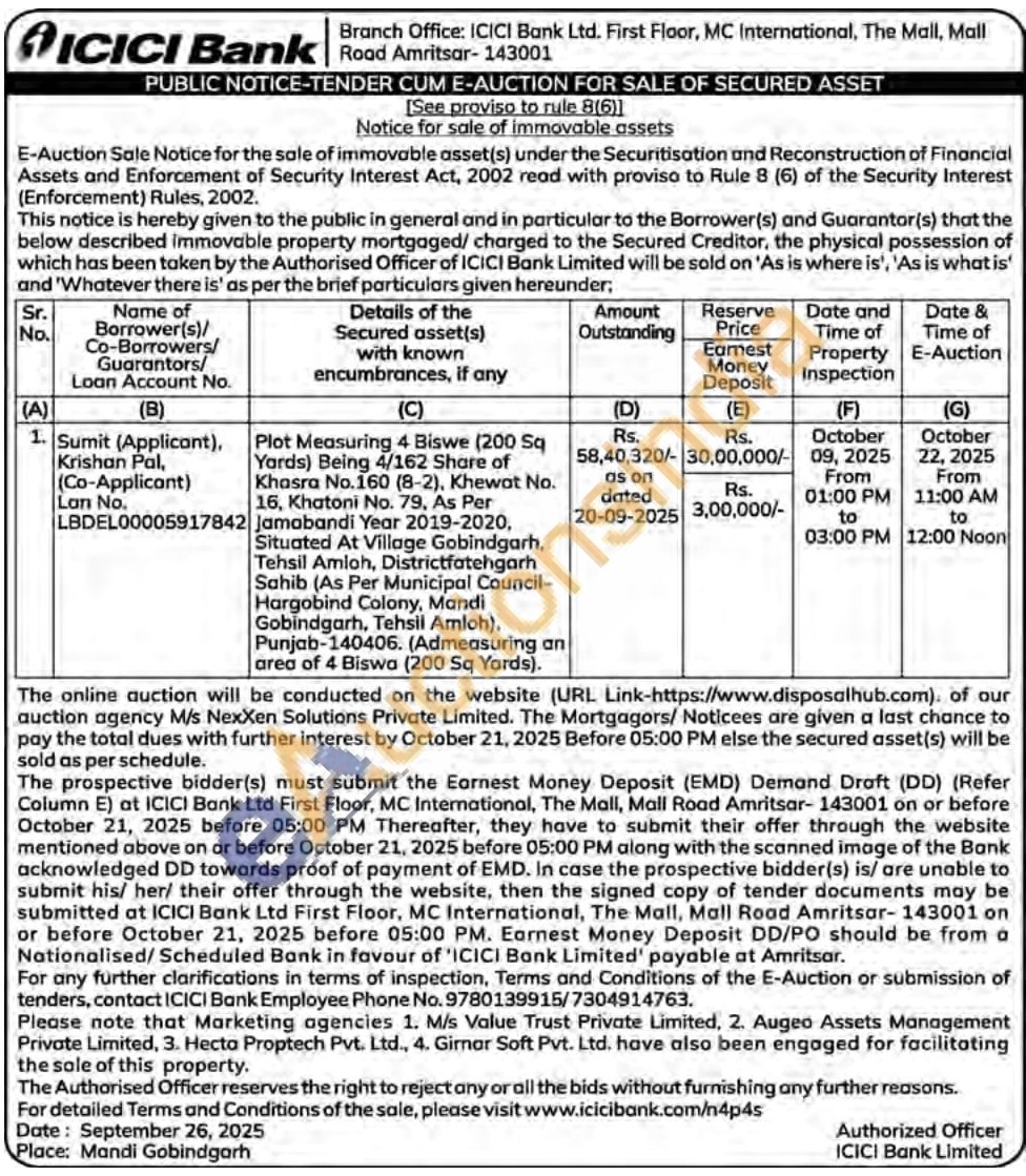 Plot Measuring 4 Biswe (200 Sq Yards) Being 4/162 Share of Khasra No.160 (8-2), Khewat No. 16, Khatoni No. 79, As Per Jamabandi Year 2019-2020, Situated At Village Gobindgarh, Tehsil Amloh, Districtfatehgarh Sahib (As Per Municipal Council-Hargobind Colony, Mandi Gobindgarh, Tehsil Amloh). Punjab-140406. (Admeasuring an area of 4 Biswa (200 Sq Yards).