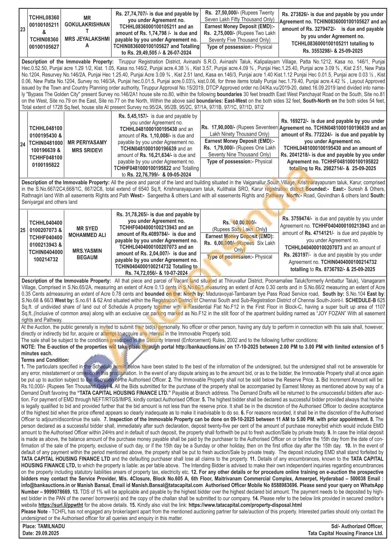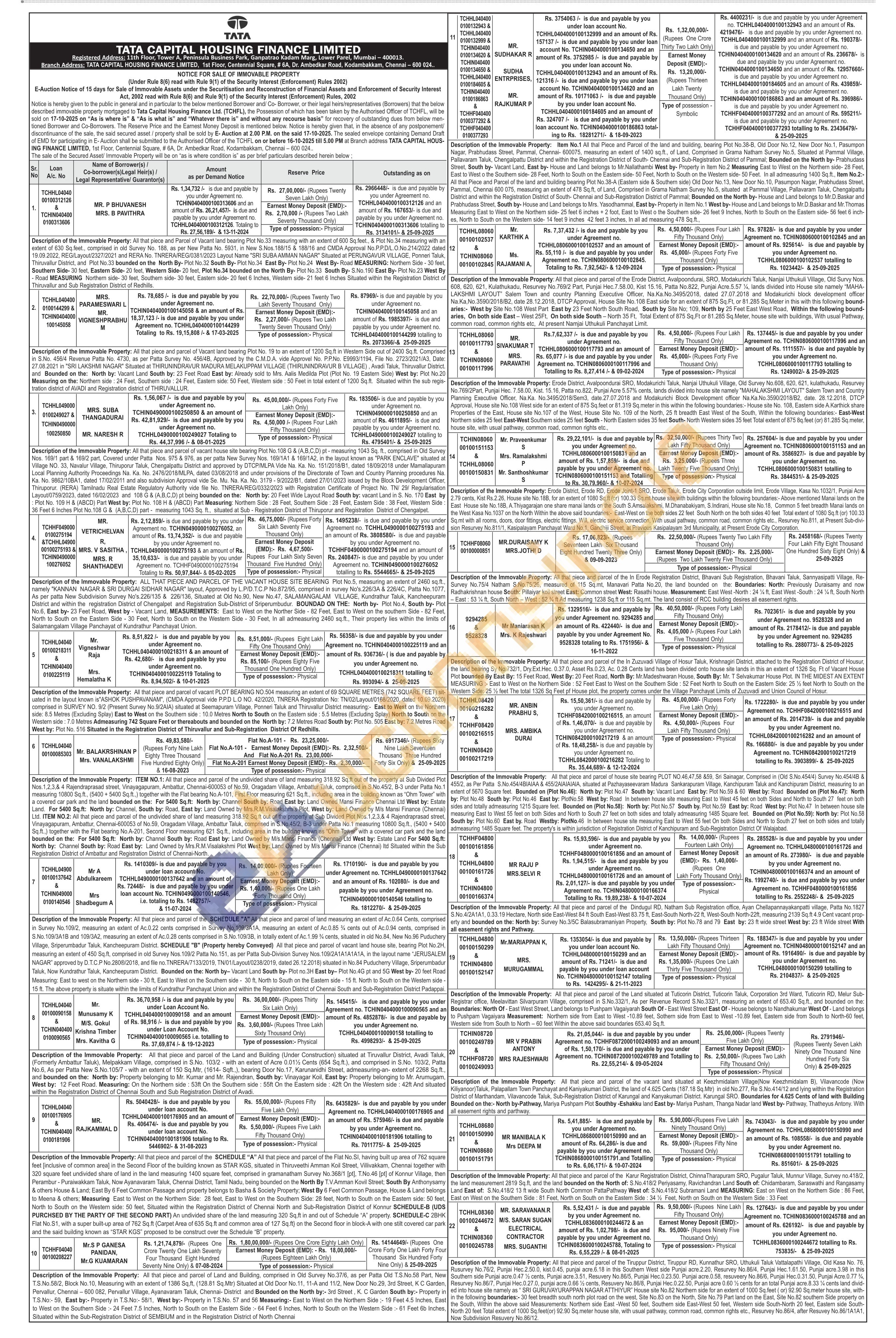 Description of the Immovable Property: All that piece and parcel of the vacant land situated at Keezhmidalam Village(Now Keezhmidalam B), Vilavancode (Now Kiliyanoor) Taluk, Palapallam Town Panchayat and Kaniyakumari District, the land of 4.625 Cents (187.18 Sq.Mtr) in old No.277, Re S.No.414/12 and lying within the Registration District of Marthandam, Vilavancode Taluk, Sub-Registration District of Karungal and Kanyakumari District. Karungal SRO. Boundaries for 4.625 Cents of land with Building Bounded on the:- North by-Pathway, Mariya Pushpam Plot Southby-Eshakku land East by- Mariya Pusham, Thanga Nadar land West by- Pathway, Thatheyus Antony. With all easement rights and parthway.
