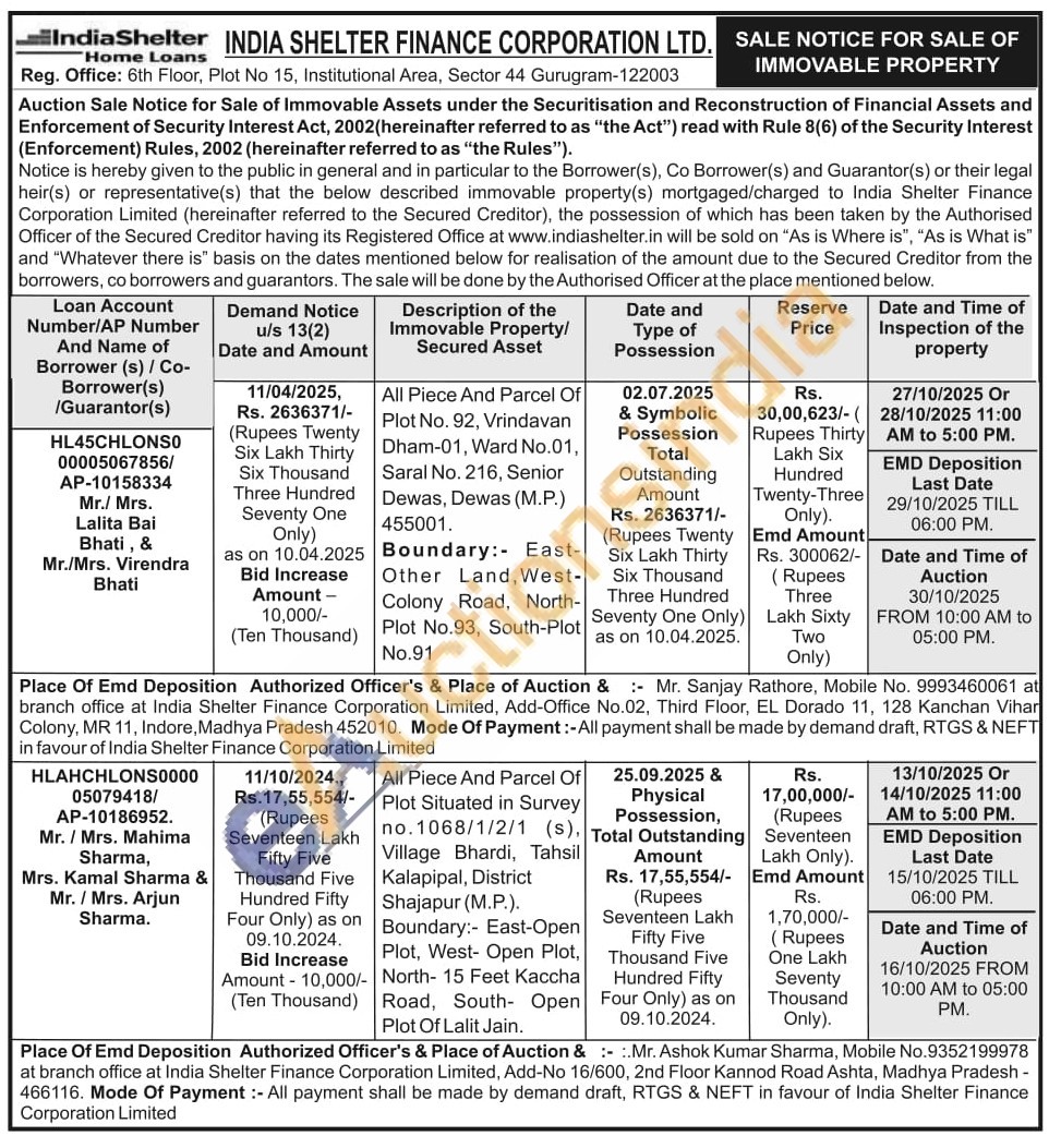 All Piece And Parcel Of Plot No. 92, Vrindavan Dham-01, Ward No.01, Saral No. 216, Senior Dewas, Dewas (M.P.) 455001. Boundary:- East-Other Land, West-Colony Road, North-Plot No.93, South-Plot No.91