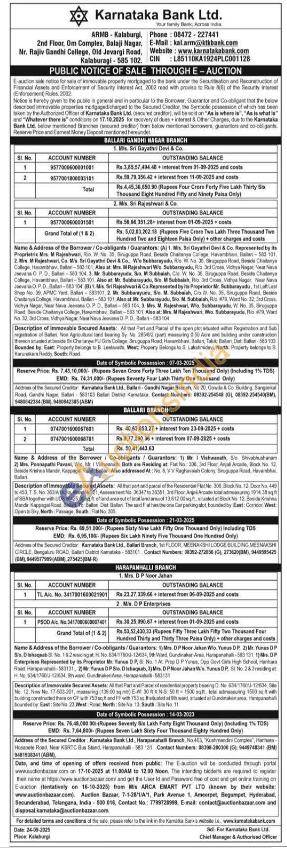 Description of Immovable Secured Assets: All that Part and Parcel of residential property bearing D. No. 634/1760/J-12/634, Site No. 12, New No. 17-503-201, measuring (139.00 sq.mtr) E-W: 30 ft X N-S: 50 ft 1500 sq ft., total admeasuring 1500 sq.ft with building constructed there on GF with 753 sq ft and FF with 753 sq.ft situated at 9th ward, situated at Gundinaken area, Harapanahalli bounded by East: Site No. 23, West: Road, North: Site No. 13, South: Site No. 11