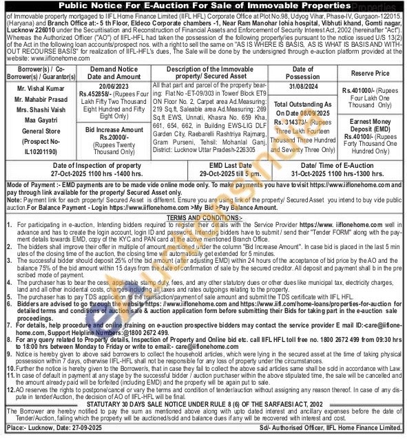 All that part and parcel of the property bear- ing: Flat No -ET-09/303 in Tower Block ET9 ON Floor No. 2, Carpet area Ad. Measuring: 219 Sq.ft, Saleable area Ad. Measuring: 269 Sq.ft EWS, Unnati, Khasra No. 659 Kha 661, 654, 662, in Building EWS-LIG DLF Garden City, Raebarelli Rashtriya Rajmarg. Gram Purseni, Tehsil. Mohanlal Ganj District: Lucknow Uttar Pradesh-226305
