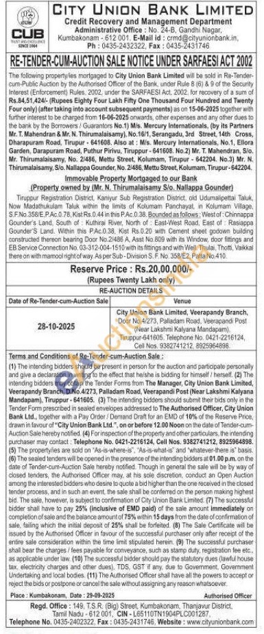 Contact Telephone No. 0421-2216124, Cell Nos. 9382741212, 8925964896