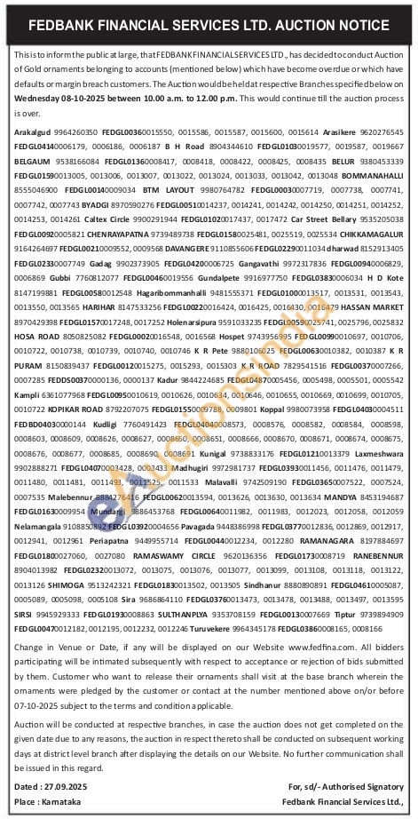 Fedbank Financial Services Ltd Gold Auctions Auction in Kundagol