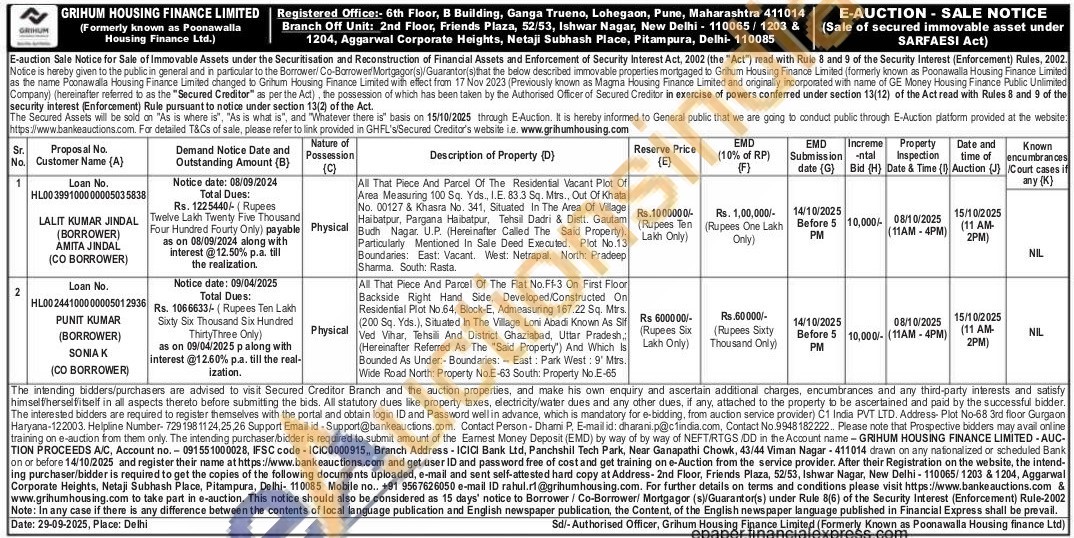 All That Piece And Parcel Of The Residential Vacant Plot Of Area Measuring 100 Sq. Yds, I.E. 83.3 Sq. Mirs., Out Of Khata No. 00127 & Khasra No. 341, Situated In The Area Of Village Haibatpur, Pargana Haibatpur, Tehsil Dadri & Distt. Gautam Budh Nagar. U.P. (Hereinafter Called The Said Property). Particularly Mentioned In Sale Deed Executed. Plot No.13 Boundaries: East: Vacant, West: Netrapal, North: Pradeep Sharma. South: Rasta.