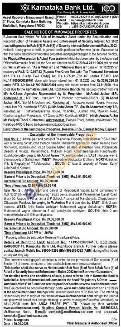 Item No: 2: All that part and parcel of Residential Vacant Land comprised in R.S.No.218/5, with land measuring 195.25 cents, situated at Pannamanna Canal Road, Block 55, Opposite Panamanna UP School, Ananganadi Panchayath, Cherpulassery, Ottapalam, Palakkad belonging to Mr.Ambas P. and bounded by. EAST: Ithile 2 aam nambru WEST: Ithile kkulla vazhiyum Muhammed vagha shthalavum, NORTH: Muhammed vagha sthalavum 6 adi veediyulla vazhiyum, SOUTH: Ithile 2 am numberilekulla vzhi 10 ft.veediyulladu