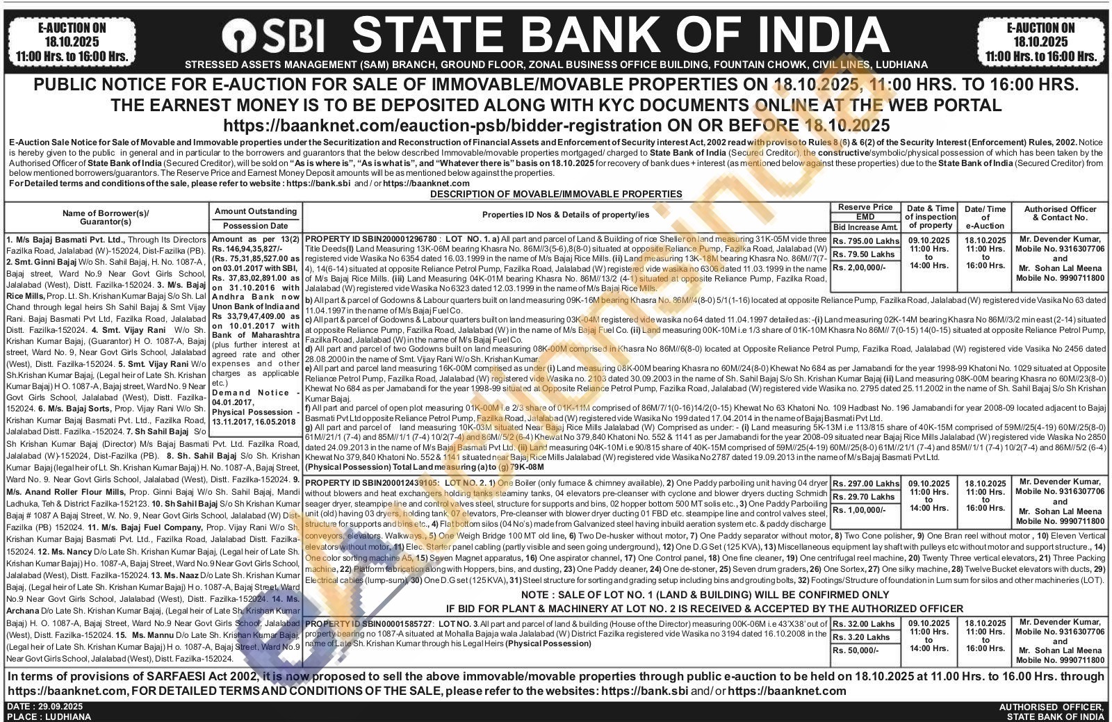 LOT NO. 2. 1) One Boiler (only fumace & chimney available), 2) One Paddy parboiling unit having 04 dryer Rs without blowers and heat exchangers holding tanks steaminy tanks, 04 elevators pre-cleanser with cyclone and blower dryers ducting Schmidh seager dryer, steampipe line and control valves steel, structure for supports and bins, 02 hopper bottom 500 MT solis etc., 3) One Paddy Parboiling unit (old) having 03 dryers, holding tank, 07 elevators, Pre-cleanser with blower dryer ducting 01 FBD etc. steampipe line and control valves steel, structure for supports and bins etc., 4) Flat bottom silos (04 No's) made from Galvanized steel having inbuild aeration system etc. & paddy discharge conveyors, elevators, Walkways., 5) One Weigh Bridge 100 MT old line, 6) Two De-husker without motor, 7) One Paddy separator without motor, 8) Two Cone polisher, 9) One Bran reel without motor, 10) Eleven Vertical elevators without motor, 11) Elec. Starter panel cabling (partly visible and seen going underground), 12) One D.G Set (125 KVA), 13) Miscellaneous equipment lay shaft with pulleys etc without motor and support structure., 14) One color sorting machine A5, 15) Seven Magnet apparatus, 16) One aspirator channel, 17) One Control panel, 18) One fine cleaner, 19) One centrifugal reel machine, 20) Twenty Three vertical elevators, 21) Three Packing machine, 22) Platform fabrication along with Hoppers, bins, and dusting, 23) One Paddy deaner, 24) One de-stoner, 25) Seven drum graders, 26) One Sortex, 27) One silky machine, 28) Twelve Bucket elevators with ducts, 29) Electrical cables (lump-sum), 30) One D.Gset (125KVA), 31) Steel structure for sorting and grading setup including bins and grouting bolts, 32) Footings/Structure of foundation in Lum sum for silos and other machineries (LOT).