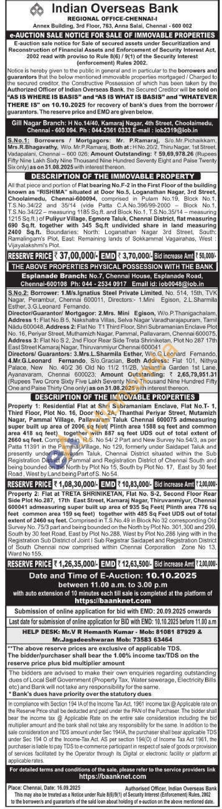 Side Plot No.287, 17th East Street, Kamaraj Nagar, Thiruvanmiyur, Chennai 600041 admeasuring super built up area of 935 Sq Feet(Plinth area 776 sq feet common area 159 sq feet) together with 485 Sq Feet UDS out of total extent of 2460 sq feet. Comprised in T.S.No.49 in Block No 32 corresponding Old Survey No. 75/3 part and being bounded on the North by Plot No. 301,300 and 299, South by 30 feet Road, East by Plot No.288, West by Plot No.286 lying with in the Registration Sub District of Joint | Sub Registrar Saidapet and Registration District of South Chennail now comprised within Chennai Corporation Zone No 13, Ward No 155