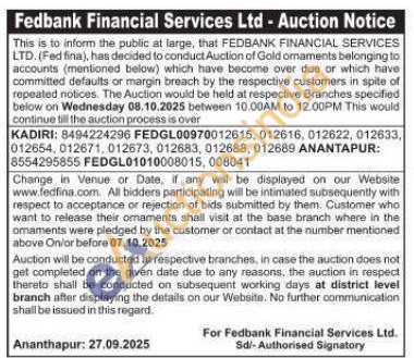 Fedbank Financial Services Ltd Gold Auctions Auction in Anantapur