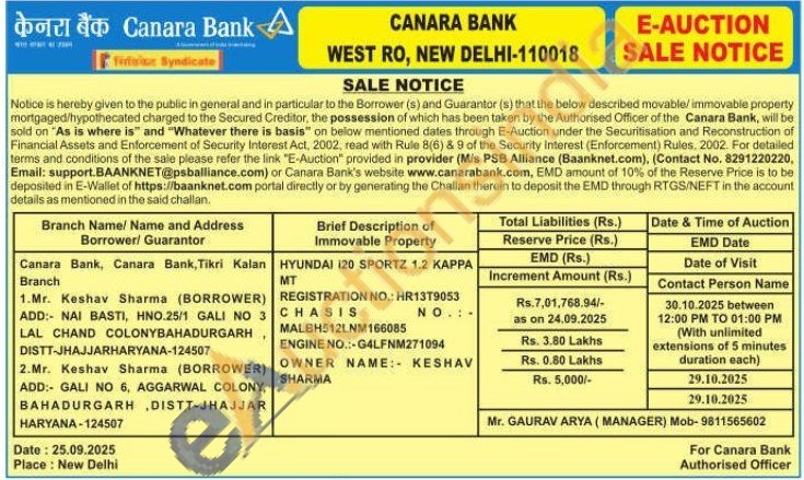 HYUNDAI 120 SPORTZ 1.2 KΑΡΡΑ MT REGISTRATION NO.: HR13T9053 CHASIS NO.:- MALBH512LNM166085 ENGINE NO.:-G4LFNM271094 OWNER NAME: KESHAV SHARMA