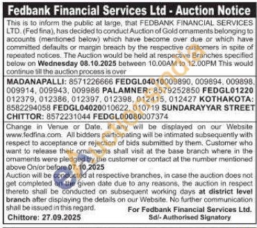 Fedbank Financial Services Ltd Gold Auctions Auction in Chittoor