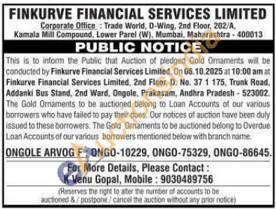 FINKURVE FINANCIAL SERVICES LIMITED Gold Auctions Auction in Mumbai