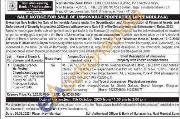 Flat No. 5 (earlier known as Flat No. 5 & 6) Third Floor, Manas Apartment Final Plot No. 60/17, CTS No. 107/19 Prabhat Road Lane No. 14, Erandawane, Pune 411004 admeasuring 2260 sq ft.