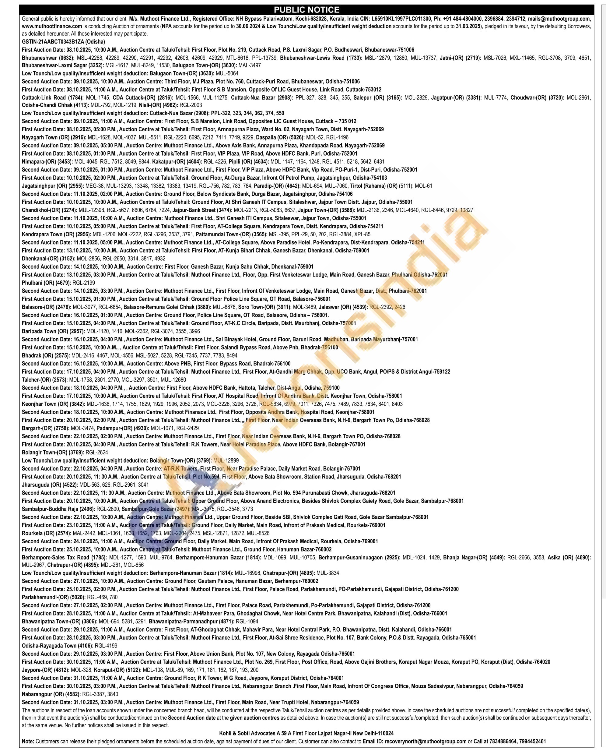 Muthoot Finance Ltd Gold Auctions Auction in Bhubaneswar