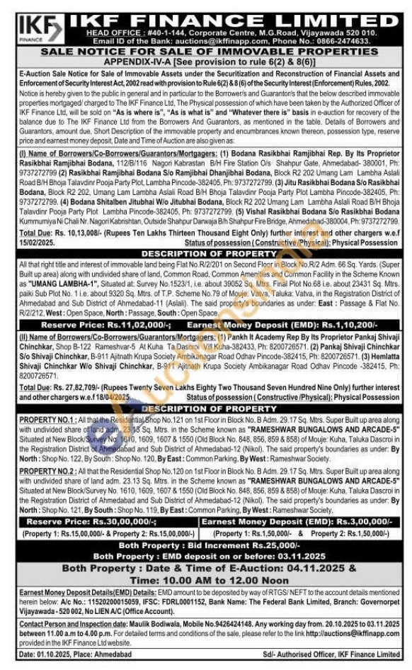 All that right title and interest of immovable land being Flat No R/2/201 on Second Floor in Block No.R2 Adm 56 Sq. Yands. (Super Built up area) along with undivided share of land, Common Road, Common Amenities and Common Facility in the Scheme Known "UMANG LAMBHA-1", Situated at Survey No. 1523/1, Le about 39062 54. Mtrs. Final Plot No 68 Le about 23431 Sq. Mrs. paiki Sub Plot No. Tie about 9320 Sq. Mtrs of T.P. Scheme No.79 of Mouje: Vatva, Taluka: Vatva, in the Registration District of Ahmedabad and Sub District of Ahmedabad-11 (Asali). The said property's boundaries as under: East: Passage & Flat No. R/2/212. West: Open Space, North: Passage, South: Open Space