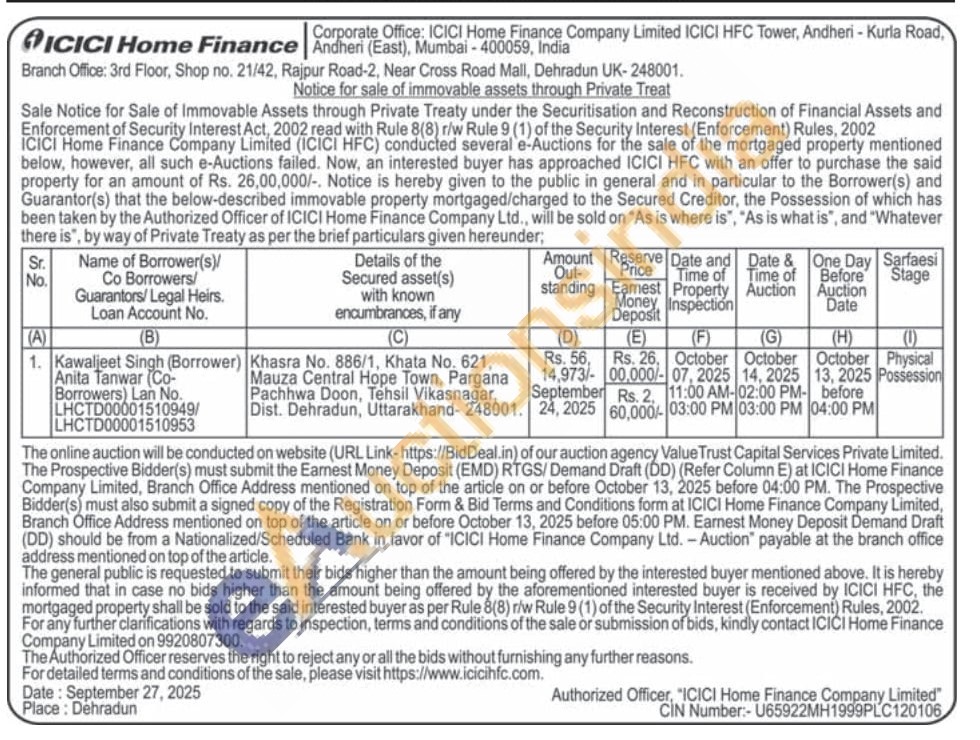 Khasra No. 886/1, Khata No. 621, Mauza Central Hope Town, Pargana Pachhwa Doon, Tehsil Vikasnagar, Dist. Dehradun, Uttarakhand-248001.
