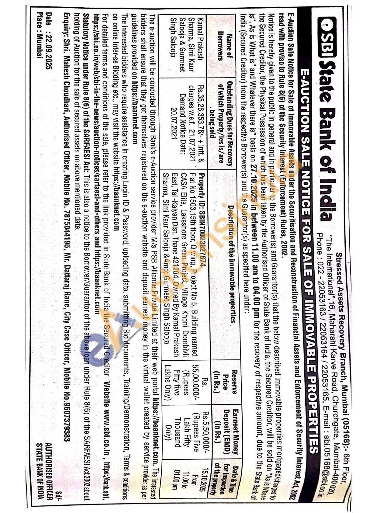 Shri. Mahesh Choudhari, Authorised Officer, Mobile No. 7875044195, Mr. Dattaraj Rane, City Case Officer, Mobile No.9607379383
