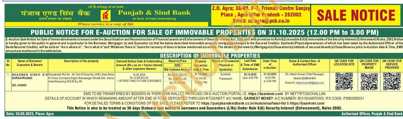 Residential Plot No. 99. Part Of Arazi No.1 2000. Bans Bhvie Ki Tonya Company Baghi Baruasagar, Tehsil Dist Jhansi Ana Mossing 165 458 Mi