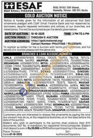 ESAF SMALL FINANCE BANK Gold Auctions Auction in Chhindwara