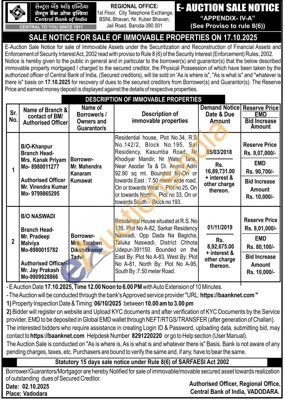 Residential House situated at R.S. No 135, Plot No A-82, Sarkar Residency Naswadi, Opp Dada Na Bagicha, Taluka Naswadi, District Chhota Udepur-391150. Bounded on the East By: Plot No A-83, West By: Plot No A-81, North By: Plot No A-95, South By : 7.50 meter Road.
