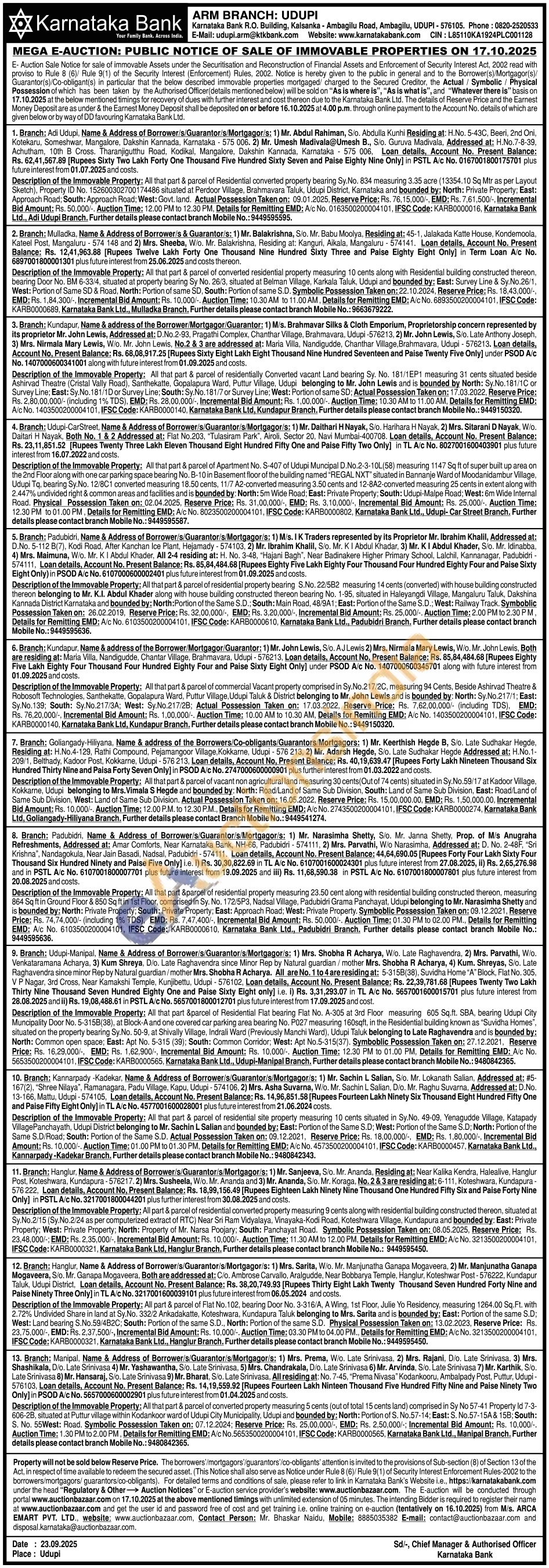 All that part &parcel of Residential Flat bearing Flat No. A-305 at 3rd Floor measuring 605 Sq.ft. SBA, bearing Udupi City Muncipality Door No. 5-315B(38), at Block-A and one covered car parking area bearing No. P027 measuring 160sqft, in the Residential building known as "Suvidha Homes", situated on the property bearing Sy.No. 50-9, at Shivally Village, Indrali Ward (Previously Manchi Ward), Udupi Taluk belonging to Late Raghavendra and is bounded by: North: Common open space; East: Apt No. 5-315 (39); South: Common Corridor; West: Apt No.5-315(37). Symboblic Possession Taken on: 27.12.2021